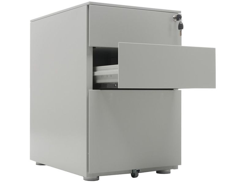 - Нагрузка на ящики для канцелярских принадлежностей – 10 кг, на нижние файловые – 25 кг (в основании файлового ящика установлено колесо, увеличивающее грузоподъёмность)